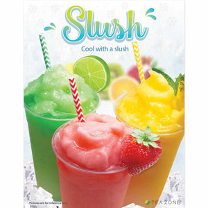 This beautiful poster is the perfect way to brighten up your store or cafe and let everyone know that you sell slushes made with Tea Zone! Single-sided 24" x 36" printed with UV coating for long-lasting affect.